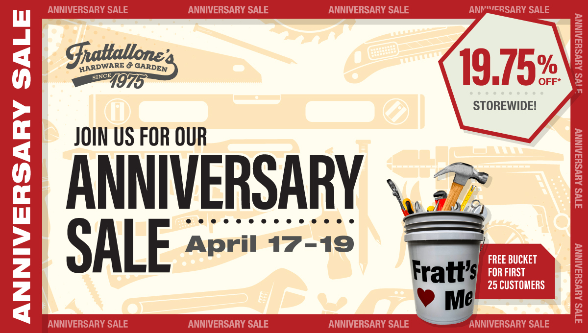 Friday, April 17 through Sunday, April 19, we’re celebrating serving the Twin Cities since 1975 with 19.75% off throughout the store* — and we’ll even have birthday cake and a free 5 gallon bucket for the first 25 customers at every store all three days!
